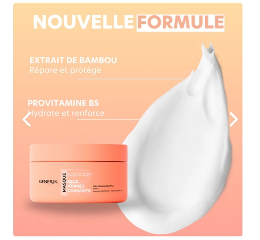 Accueil SHAMPOOING ET SOIN générik Générik masque cheveux secs abimés cassants 250ml